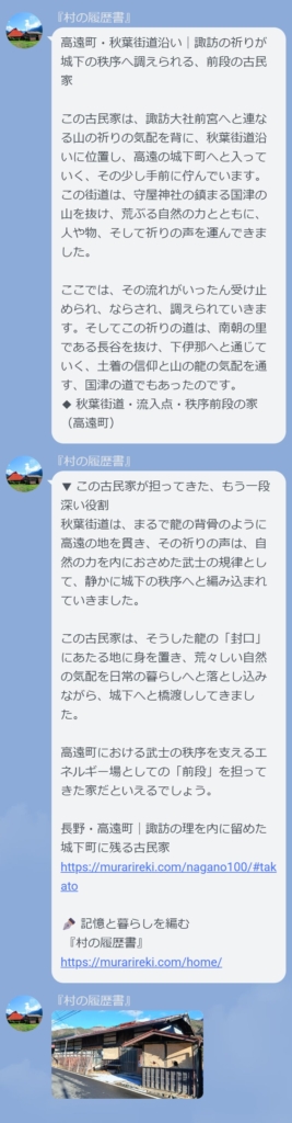 🛖 高遠町・秋葉街道沿い|諏訪の祈りが城下の秩序へ調えられる、前段の古民家